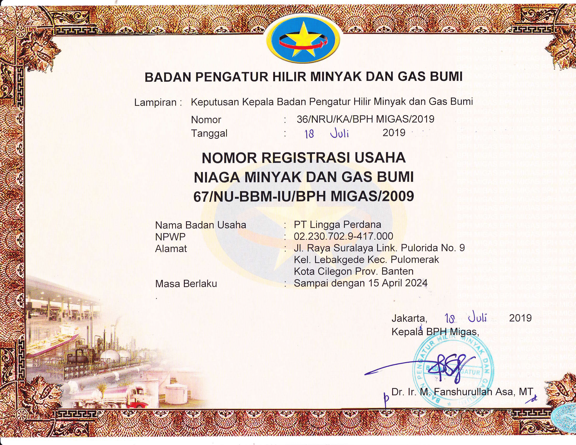 PT Lingga Perdana adalah agen resmi yang memiliki izin niaga umum untuk penyaluran BBM, menjamin keaslian dan legalitas produk yang disalurkan.