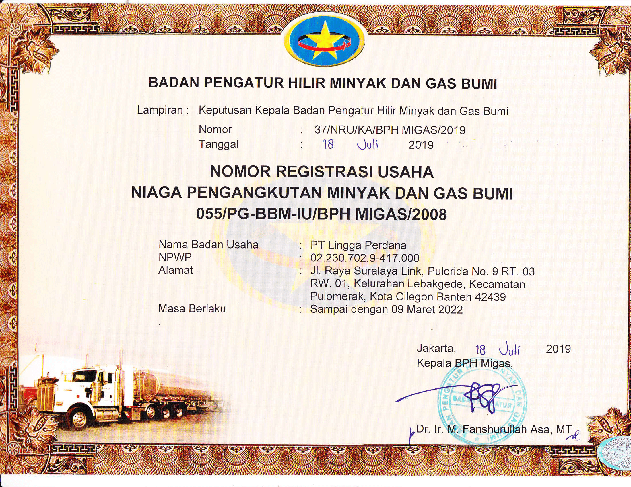 Kami memiliki seluruh dokumen pendukung dan izin resmi dari instansi terkait, termasuk perizinan migas, sertifikat K3, dan surat izin angkutan bahan berbahaya.